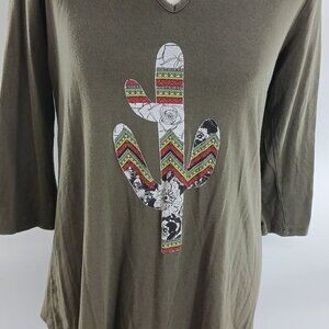 Altar'd State Top Womens Size Small Olive Green Cactus Graphic Keyhole Tunic