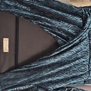 Altar'd State Turquoise Velvet Dress with Black Burnout Geometric Design & Stunning Asymmetric Hemline.