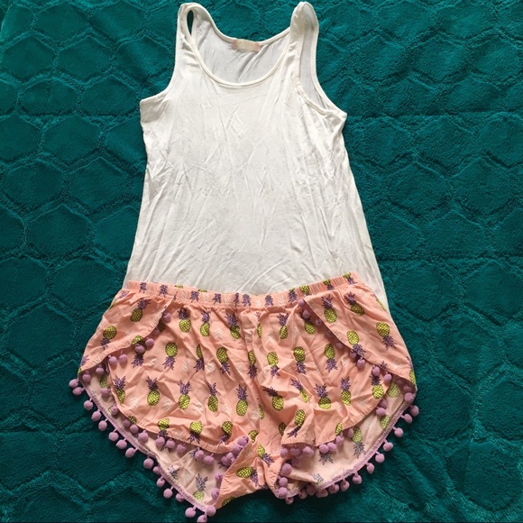 Cute and comfy sleepwear set from Altar’d State. Soft cream colored tank in a size medium. Made of rayon and spandex for comfort and stretch . Shorts are a size small and have an adorable pineapple print. Shorts made of rayon and nylon. Good condition!