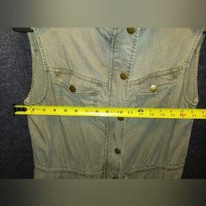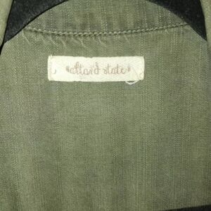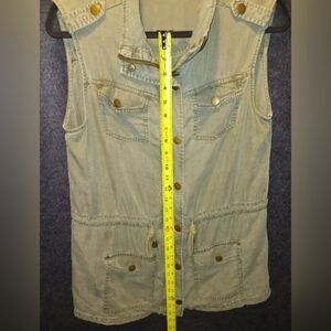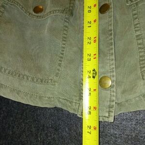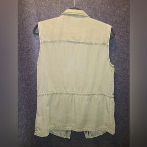Description: Altar'd State Women's Large Sleeveless Utility Jacket Vest Zip Olive Green. Loose fit with zip and snap button front closure. Adjustable tie at the waist area. 100% Tencel. Machine washable.