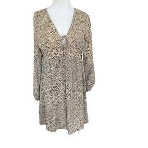 Altar'd State V Neck Tie Babydoll Dress Size Medium Animal Print NEW NWT AE203