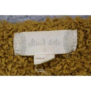 This is an Altar'd State V-Neck Oversized Long Sleeve Sweater that is a size Large. It has a front full zipper. It is a shaggy knit. There is no material Tag. Laying flat, it measures: Armpit to armpit-23" and the length is 25". It is in good condition.