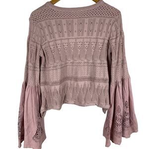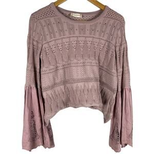 Altard State Violet Crochet Pullover Sweater Bell Sleeves Eyelet Size Small