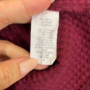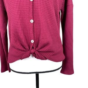 Altar’d State waffle knit button down top with tie on waist. Size small. V-neck. Color is burgundy/maroon. Very gently worn. Pit to pit 19, length 21