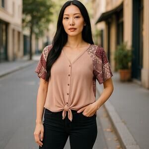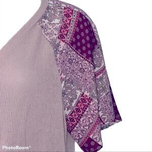 Altar'd State Waffle Knit Tie Front Blouse Patchwork Paisley Sleeves Size Small