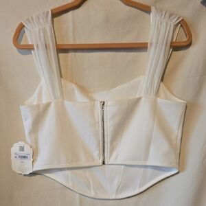 This elegant white tank top from Altar'd State features a fitted bustier design, perfect for adding a touch of sophistication to any outfit. The sleeveless style and structured silhouette make it ideal for formal occasions, ensuring a flattering and chic appearance.