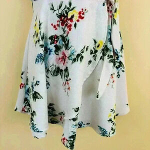 Altar’d State White Floral Plunge Neck Spaghetti Strap Tie Mini Dress Size L