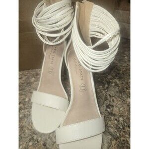 Altar’d State White Genuine Leather Block Heel Sandals Size 7.5 | Strappy Zip...