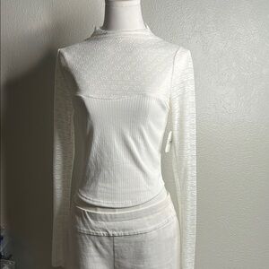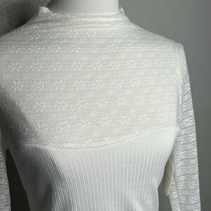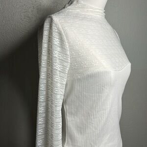 Altar’d State White Lace & Stretch Knit Mock Neck Top NWT Sz Large