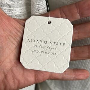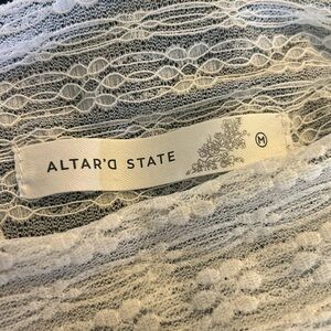 Altar’d State White Lace & Stretch Knit Mock Neck Top NWT Sz Large . This elegant white lace top offers a sophisticated look for any occasion. Perfect for pairing with your favorite bottoms.