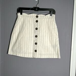 Altar’d State White Striped Mini Skirt Buttoned Front Size Small