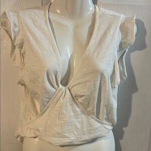 Chic white tank top featuring ruffle accents. Perfect for casual outings.