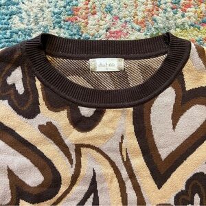 Altar'd State Woman’s Beige Brown Retro Hearts Knit Short Sweater Sz S