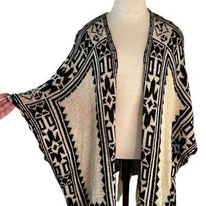 Altar’d State Womens Boho Knit Fringe Trim Coverup Kimono Cardigan Oversized M/L
