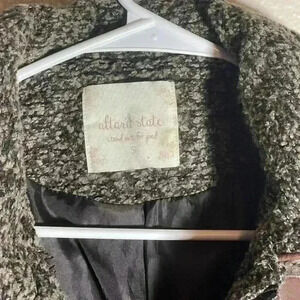 Embrace the cozy charm of this Altar'd State coat, a stylish statement piece that blends warmth and sophistication. The tweed texture offers a tactile experience, while the faux fur collar adds a touch of luxury and visual interest. Toggle closures provide a classic, secure fit, complemented by the practical and stylish pockets. This coat is perfect for crisp autumn walks, casual coffee dates, or adding a chic layer to your everyday ensemble.