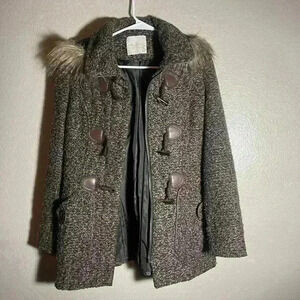 Altar'd State Womens Brown Tweed Toggle Faux Fur Collar Coat Jacket