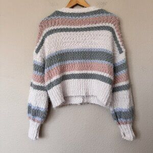 Altard State Womens Crop Ivory Combo Fuzzy Sweater Size XS Long Sleeve Cardigan