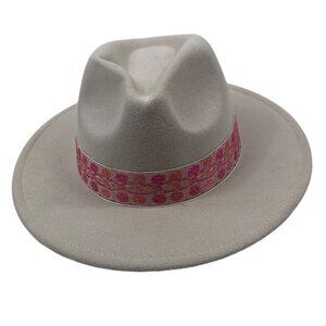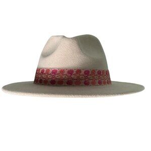Altar’d State Women's Fedora Hat Beige Pink Feminine Abstract Trim One Size