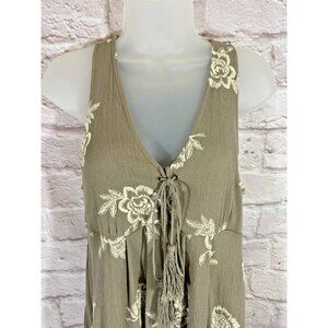 Altar'd State Womens Floral Mini Lace-up Embroidered Dress Size L Boho Cottage