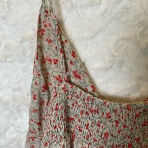 Altar’d State Women's Floral Ruffle Mini Dress Size Medium Tie-Front Beige Red