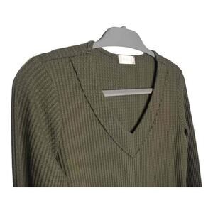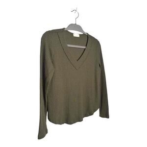 Altar'd State Womens Green Long Sleeve V-Neck Waffle Knit Ribbed‎ Sweater Size M