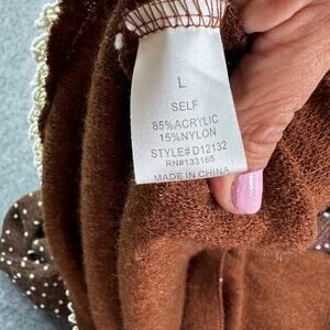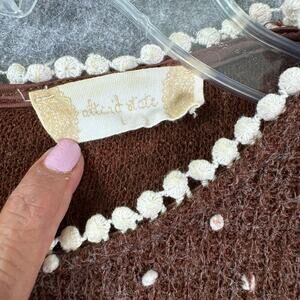 Altar'd State Women's L Brown Cream Polka Dot Cottage Boho Crochet Edge Sweater