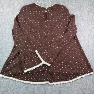 Altar'd State Women's L Brown Cream Polka Dot Cottage Boho Crochet Edge Sweater. This gorgeous sweater is A-line with Crochet Edges around neck, Sleeve and Hem. #Cottage, #Boho, #Prairie, Grandma Core.