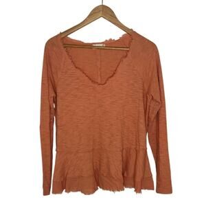 Altar'd State Women's Long Sleeve Orange Top Fringe V-Neck Shirt Size Small