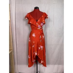 Altar'd State Women's Red Floral Satin Maxi Dress XS V-Neck High Low *read E108