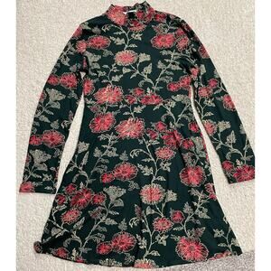 Altar'd State Women's Size M Long Sleeve High Neck Floral Mini Dress Multicolor