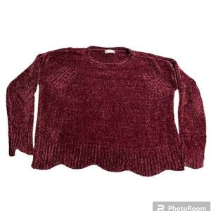 Altar'd State Women's Size Small Eversoft Chenille Scalloped Sweater Red Boxy