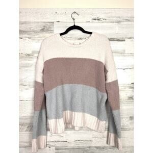 Altar’d State Women's Small Cream Boho Striped Crew Neck Pullover Sweater