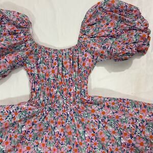 Altar'd State Womens Small Floral Puff Sleeve Smocked Mini Dress Flare Milk Maid