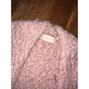 The Altar'd State women's small sweater is a cozy and stylish open front cardigan made from a soft cotton blend material. Featuring a tight-knit design with a solid pink color, this sweater is perfect for layering during the colder seasons. The sweater includes convenient pockets and long fuzzy sleeves, making it both fashionable and functional for everyday wear. The Altar'd State brand ensures quality and style in this versatile and trendy piece of women's clothing.