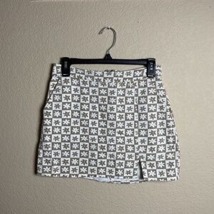 Altard State women's small tan & white checkered flower mini skirt zip back