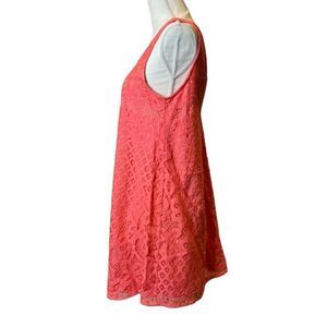 Altar'd State Women's Stretch Knit Crochet Dress Light Coral M. Light peachy coral. See photos for details and measurements. Excellent condition. tank dress, sleeveless v-back, lined, vacation, summer, spring, beach, feminine, romantic, party, wedding guest