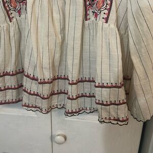 Altar'd State Women's Striped Embroidered 3/4 Sleeve Peasant Blouse Ecru Medium