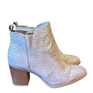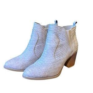 Altard State Women's Tan Snake Print Side Zip Chunky Heel Ankle Booties 9 Brynn