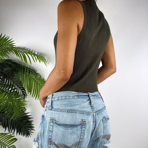 Altar'd State Women's Classy Granola Girl Green Ribbed Sleeveless Bodysuit / S