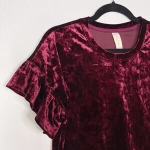 Altar'd State XSmall XS Burgundy Red Crushed Velvet Ruffle Short Sleeve Top Crew