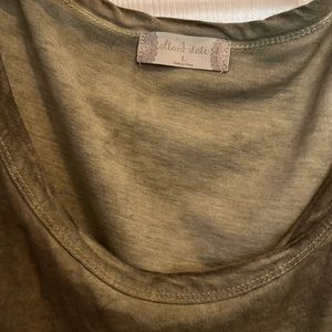 Green peplum style women’s blouse with pocket. Slits on the bottom of each side (pictured). Only worn a couple of times. Super cute with a bralette underneath!