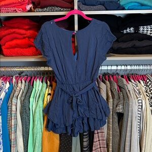 Altar’d State blue shirt sleeve v neck back tie elastic waistband romper size M