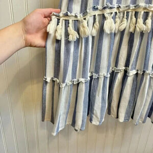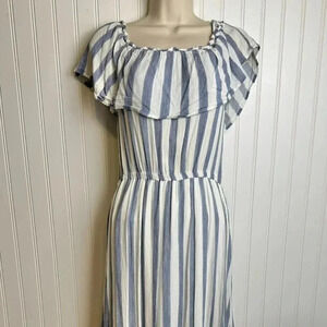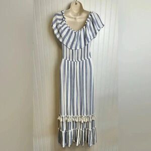 Altar'd State blue stripe off shoulder maxi dress fringe trim size small L21