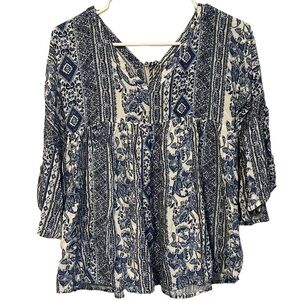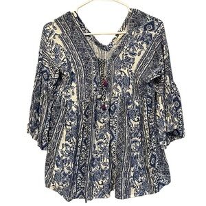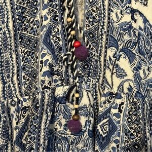 Altar’d State blue white peasant top blouse tassels size small. Good preowned condition with no known flaws. Super adorable peasant top 100% rayon. Approximate measurements 22” shoulder to hem and 16.5” pit to pit.