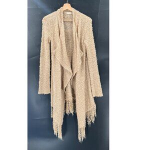 Altar'd State boucle knit fringe cardigan sweater tan boho cozy long length M