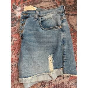 Altar’d State distressed denim shorts in a light wash. Button fly. Size 9/W29. Cotton/spandex. Great condition