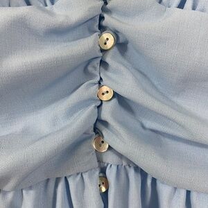 This Altar'd State dress is a size large short dress, featuring a light blue color. Made of polyester, it has long sleeves and a solid pattern, making it a stylish and comfortable choice for women. The dress is designed for regular size and is perfect for various occasions.