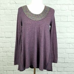 Altar'd State heather purple beaded neckline long sleeve top women's size S