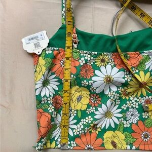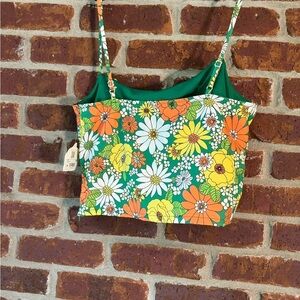 Altard State green, yellow and orange 70’s vibe camisole tank. Cropped with a fitted waist and milkmaid type top. NWT hippie daisies and flowers. Spaghetti straps that are adjustable. Size medium.