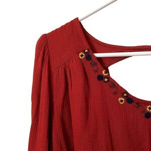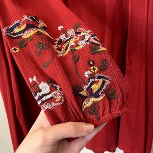Altar'd State red floral embroidered tunic long sleeved top rayon comfortable